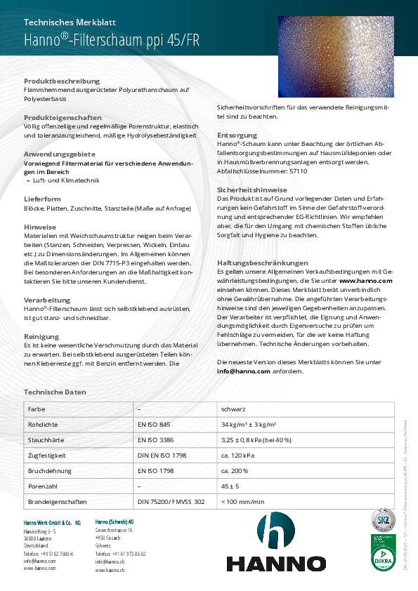 Hanno®-Filterschaum ppi 45/FR